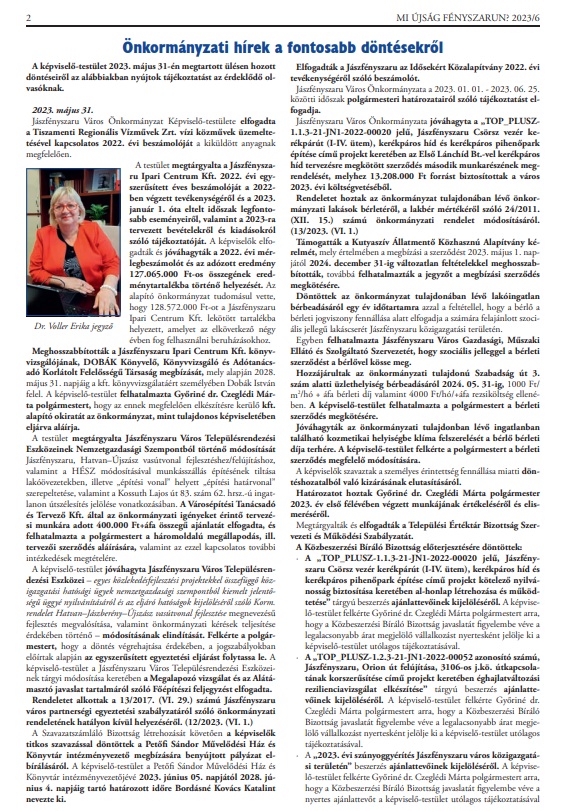 Kedvezményezett neve: Jászfényszaru Város Önkormányzata